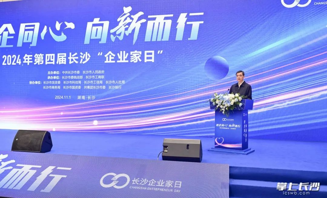 ▲周海兵出席2024年第四屆長沙“企業(yè)家日”活動并講話