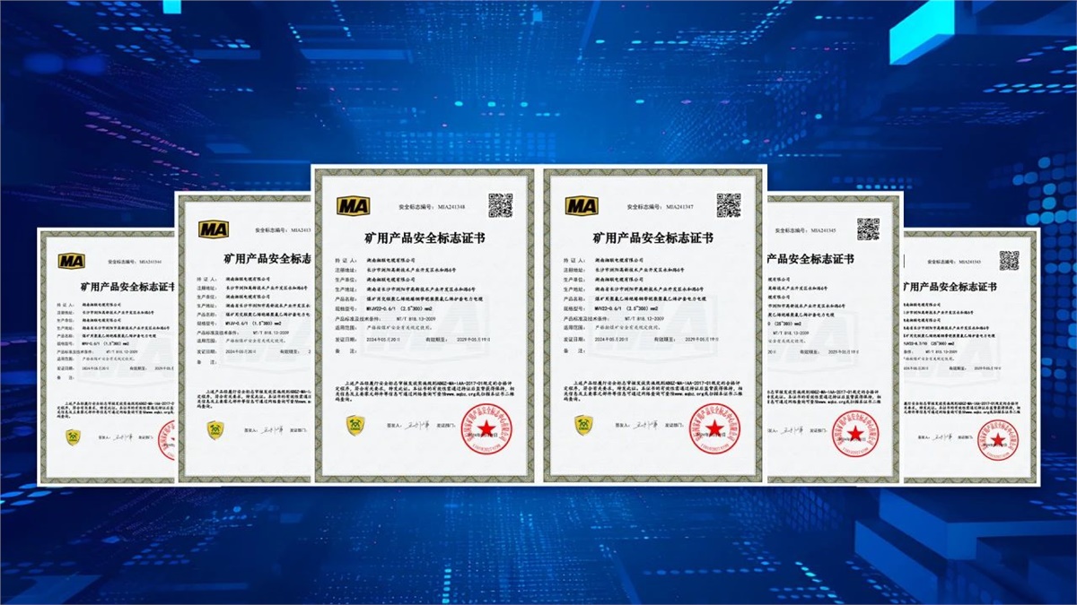 5月,湖南湘聯(lián)電纜有限公司成功取得安標國家礦用產(chǎn)品安全標志中心頒發(fā)MVV-0.6/1(1.5~300)mm2煤礦用聚氯乙烯絕緣聚氯乙烯護套電力電纜、MYJV-8.7/10(25~300)mm2煤礦用交聯(lián)聚乙烯絕緣聚氯乙烯護套電力電纜等六個產(chǎn)品的礦用產(chǎn)品安全標志證書。