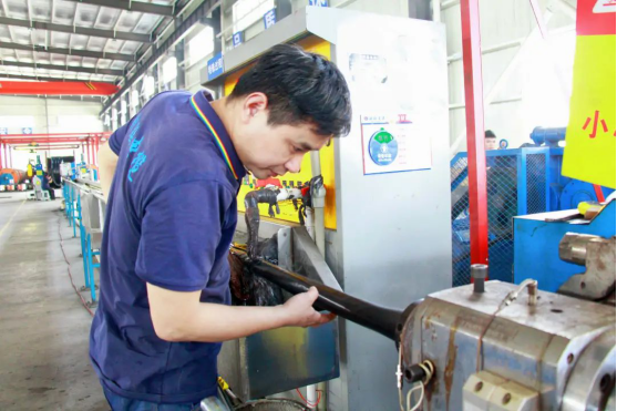 與其他組裝式的產(chǎn)品不同,后期檢查出現(xiàn)質(zhì)量問題,可以拆開重裝或更換零件,電纜的生產(chǎn)制造任何一個(gè)部件或工藝工序沒有達(dá)標(biāo),后期是無(wú)法挽回和彌補(bǔ)的。因此,電纜生產(chǎn)線上的每一個(gè)操作者都是關(guān)鍵人物。作為機(jī)組組長(zhǎng)的劉學(xué)文,深知自己肩上的重任,一旦進(jìn)入車間,他便絲毫不敢懈怠,總是在生產(chǎn)線之間來(lái)回走動(dòng),反復(fù)查看機(jī)器設(shè)備的運(yùn)轉(zhuǎn)情況、第一時(shí)間查看電纜成品質(zhì)量,快速發(fā)現(xiàn)問題,解決問題,避免不良品流入下一道工序,不僅保障了電纜質(zhì)量,而且有效提高了電纜的生產(chǎn)效率。