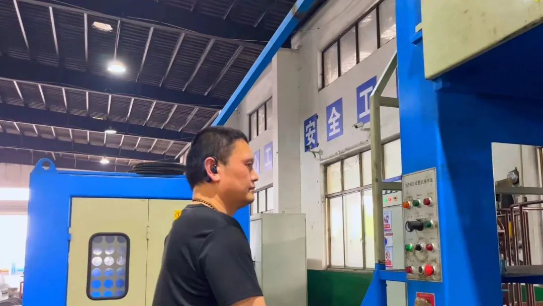 ▲拉銅車間班組成員正在進(jìn)行機(jī)器調(diào)試