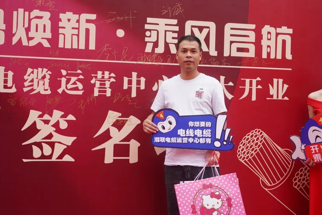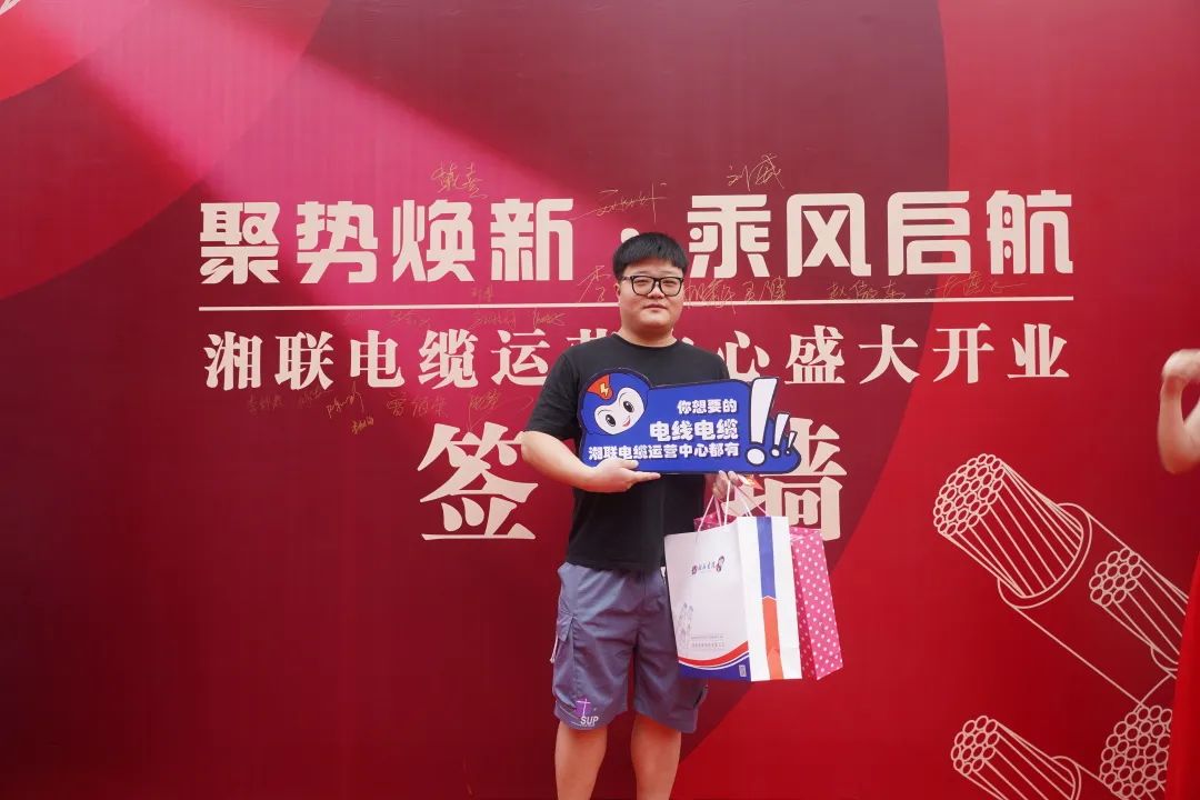 郴州市佳琪物資有限公司總經(jīng)理許靈健許總作為經(jīng)銷商代表在開業(yè)典禮上致賀詞,在發(fā)言中,他表達(dá)了對湘聯(lián)電纜的高度認(rèn)可,并表示希望能夠和湘聯(lián)電纜一起,同心同行,一起筑造更美好的明天。