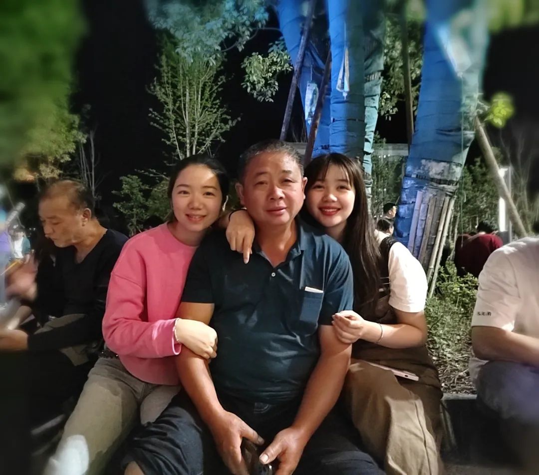 一個父親和兩個小棉襖的幸福合影