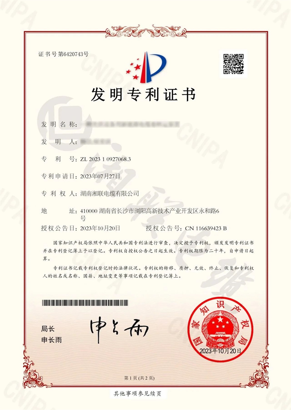 近期,經(jīng)國(guó)家知識(shí)產(chǎn)權(quán)局審核批準(zhǔn),湘聯(lián)電纜再次獲得4項(xiàng)發(fā)明專(zhuān)利和2項(xiàng)實(shí)用新型專(zhuān)利授權(quán),本次專(zhuān)利的申報(bào)類(lèi)別廣泛,涉及電線電纜的保護(hù)、檢測(cè)、防爆等技術(shù)應(yīng)用,對(duì)線纜的精益生產(chǎn)制造具有重要作用。